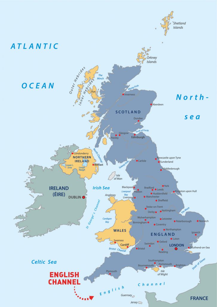 - Part of the Atlantic Ocean, separating the island of Britain (part of the UK) from northern France and joins the North Sea to the Atlantic Ocean