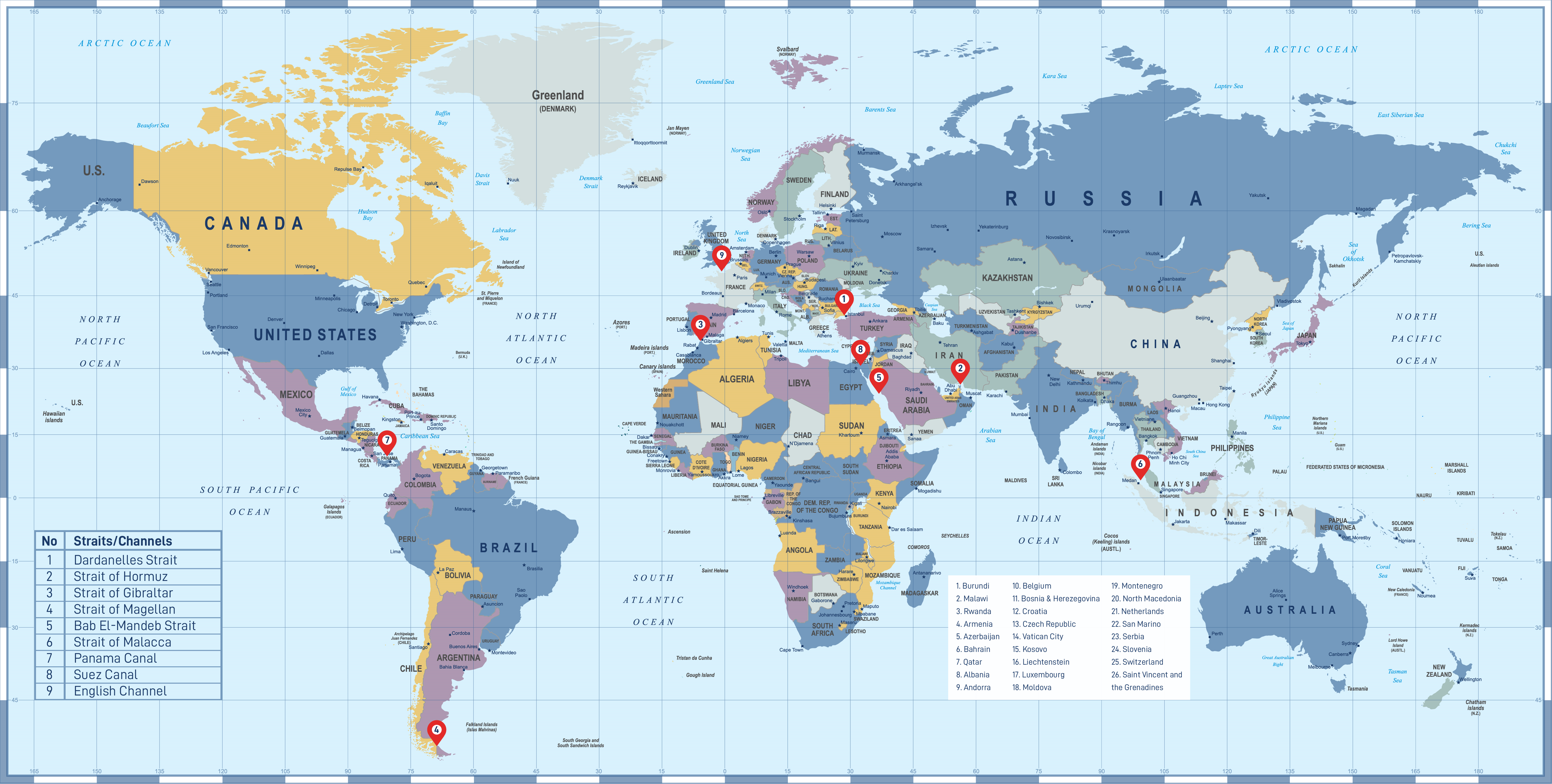 Below are some of the world’s most important straits and channels used by global shipping companies to transport goods from one location to another.
