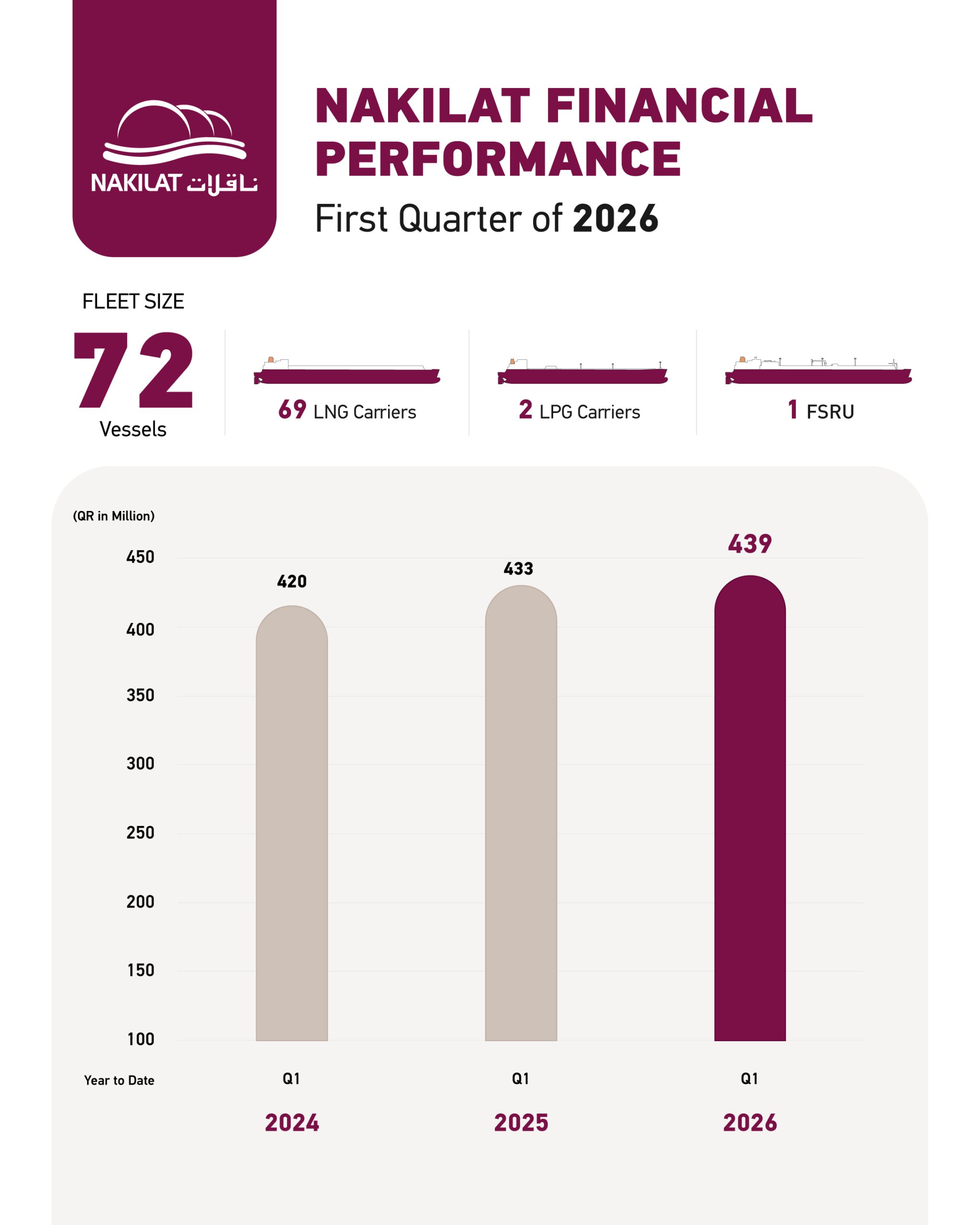 Nakilat Reports QAR 439 Million Net Profit for the First Quarter of 2026